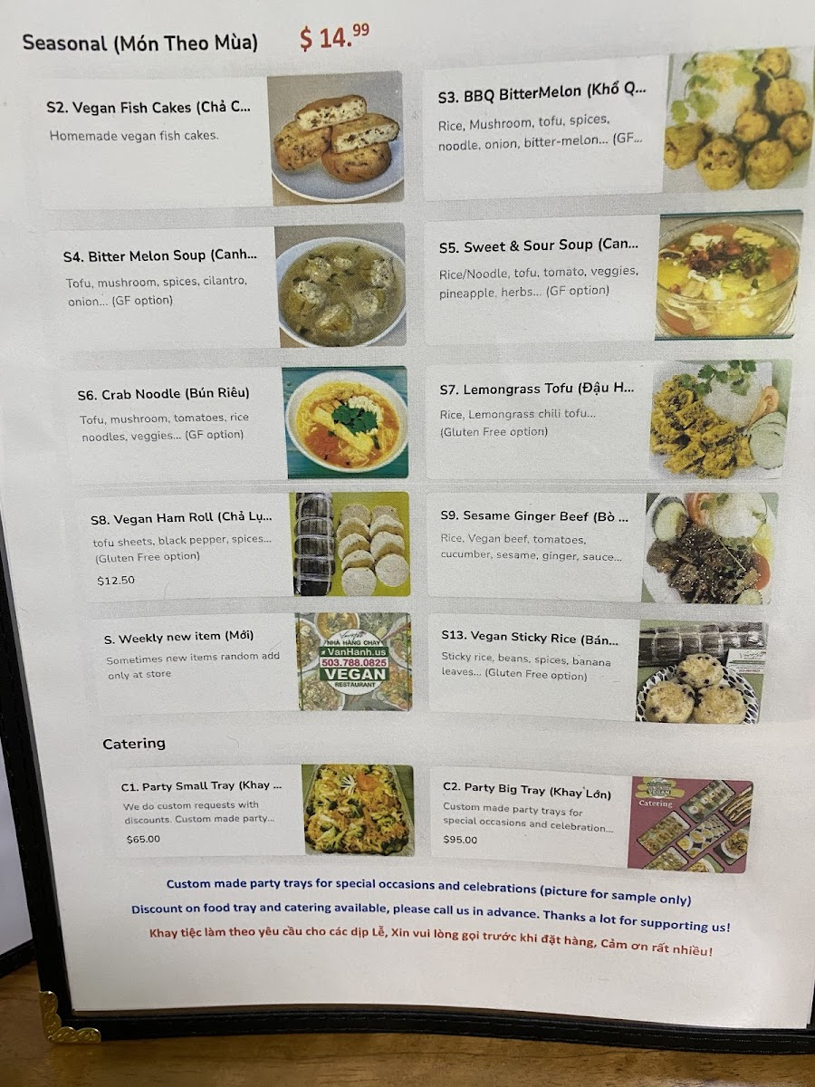 Welcome to Van Hanh Restaurant - Vegan & Vegetarian Cuisine, where authentic Vietnamese flavors meet a compassionate dining experience. Nestled at 8446 SE Division St, Portland, this gem offers a robust menu that promises something for everyone.